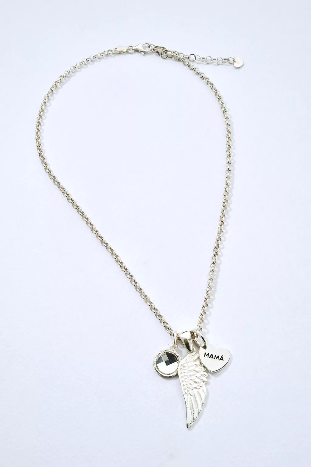 La alita de ángel te va a recordar a alguien que siempre te cuida, el corazón lleva el nombre que late fuerte en tu vida, y el cristal brilla con la luz de tus sueños.